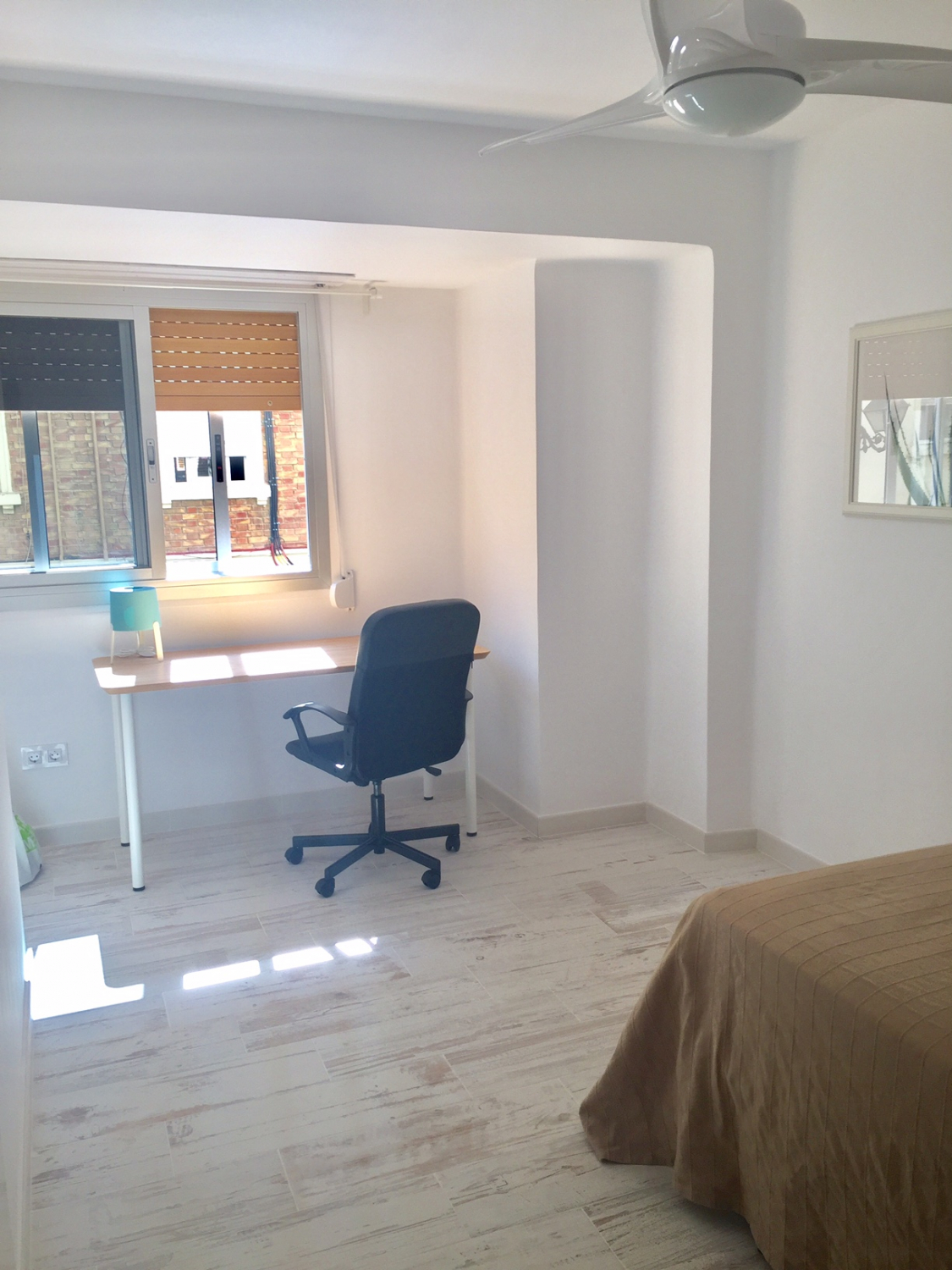 Además, dispone de un patio interior. Es un primer piso con ascensor, totalmente equipado; lavadora, lavavajillas, horno, microondas, tv, aire acondicionado en el salón comedor y pensado para estudiantes. Todas las habitaciones están totalmente equipadas de manera práctica y confortable, on mesa de estudio, estanterías, armarios empotrados, ventilador de techo, etc.
