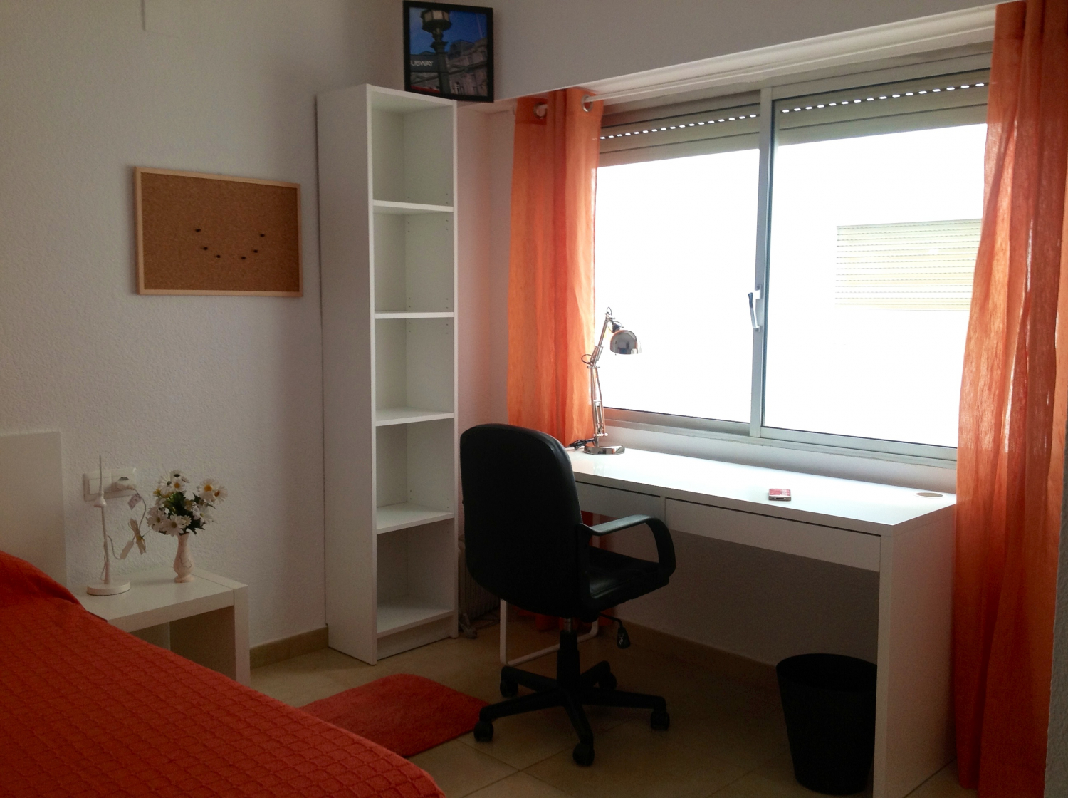 mesa de estudio, estanterías y amplios armarios, todo para garantizar que te sientas como en casa.
