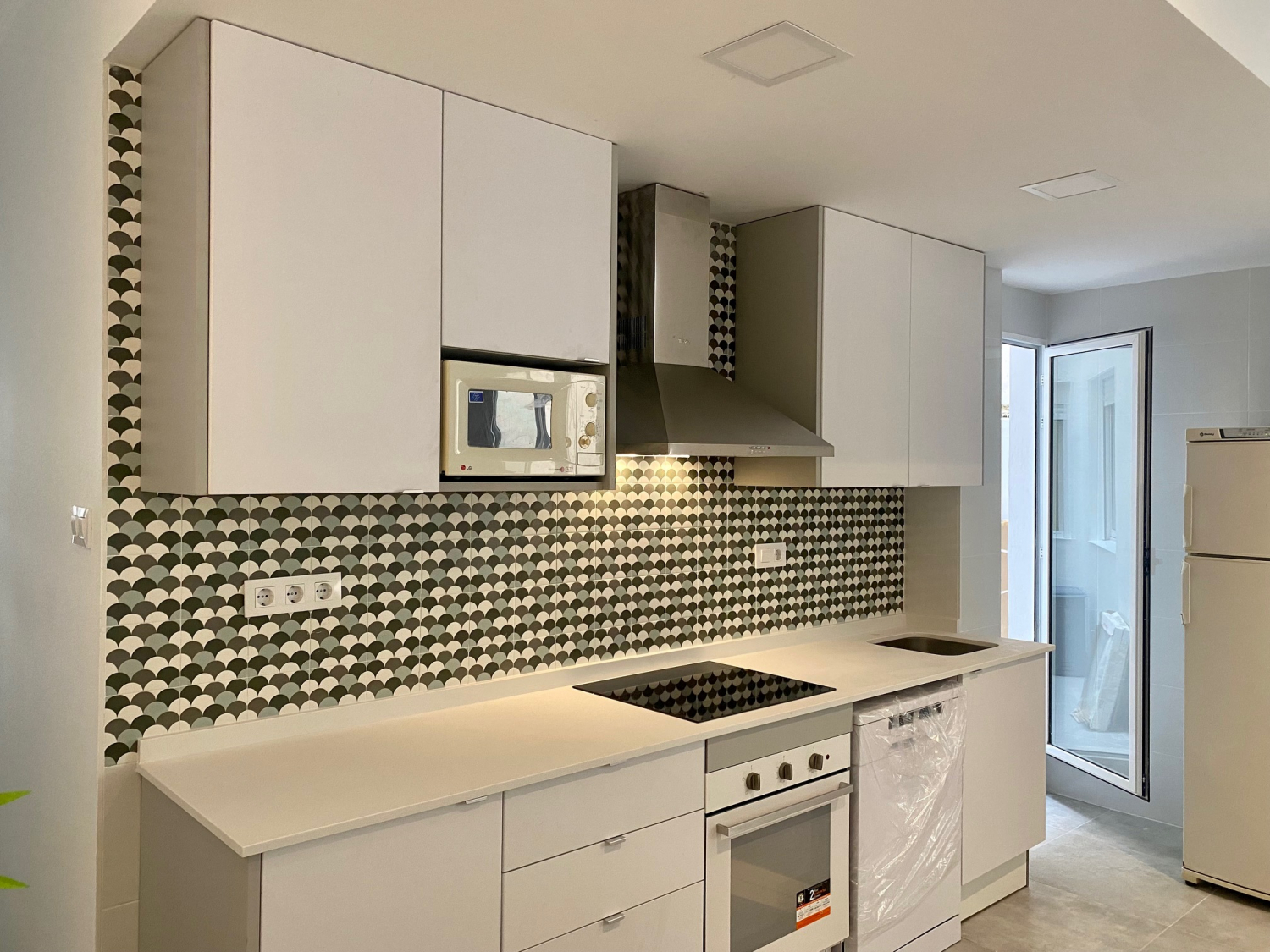 Vivienda de 95 m3, recién reformada, con 3 amplias habitaciones, 2 cuartos de baño completos, cocina totalmente equipada con lavavajillas, horno, microondas,