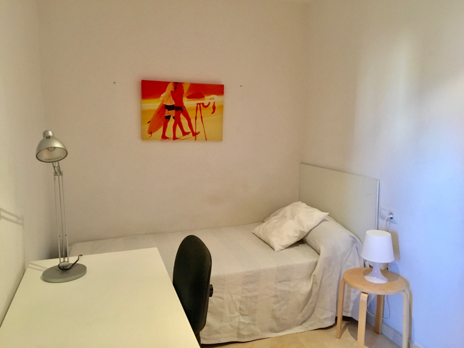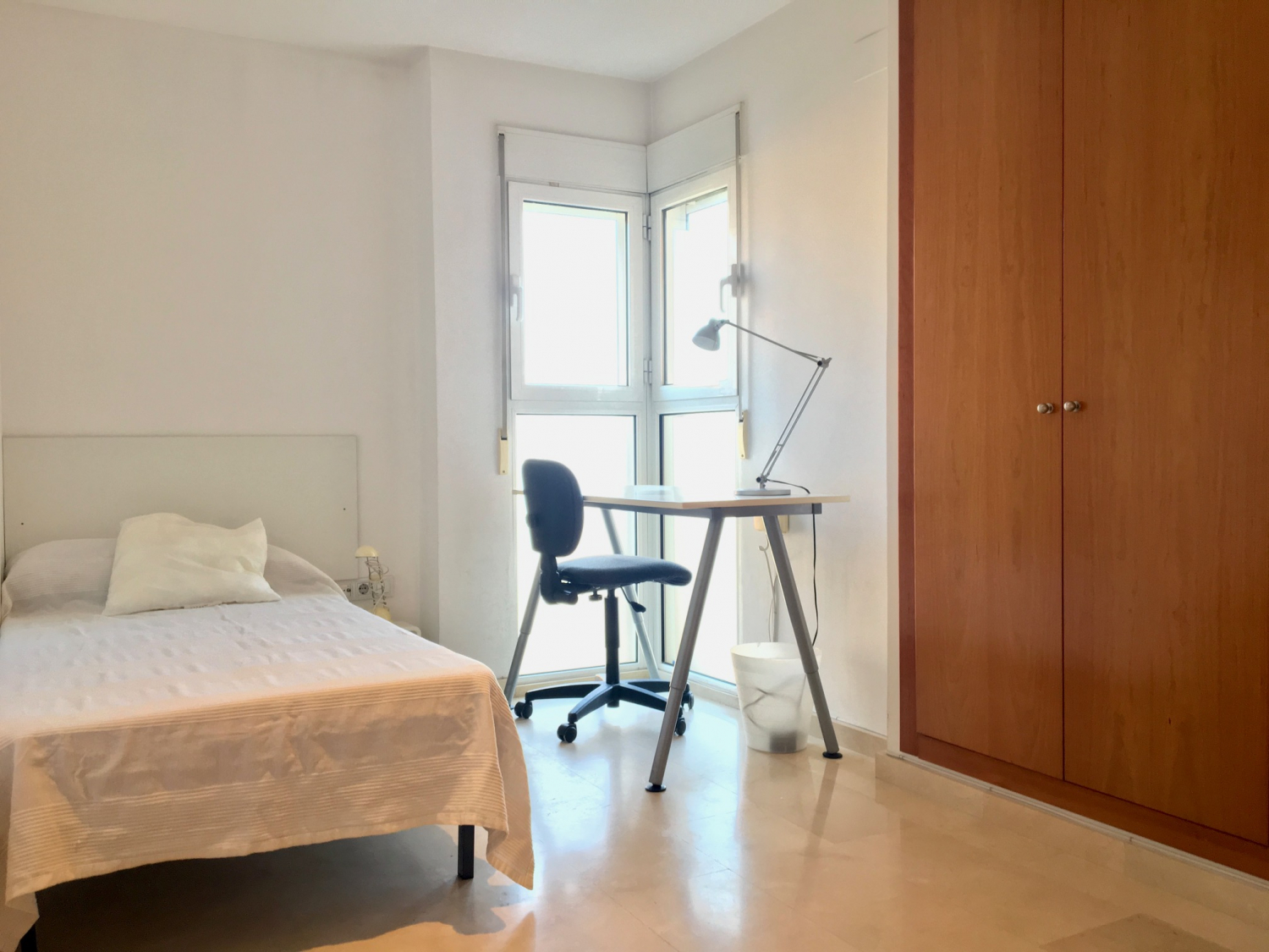 Cada habitación dispone de todo lo necesario para hacer tu estancia confortable y cubrir todas tus necesidades para estudiar: mesa grande, estanterías y por supuesto armarios empotrados con capacidad suficiente para mantener tu habitación ordenada.