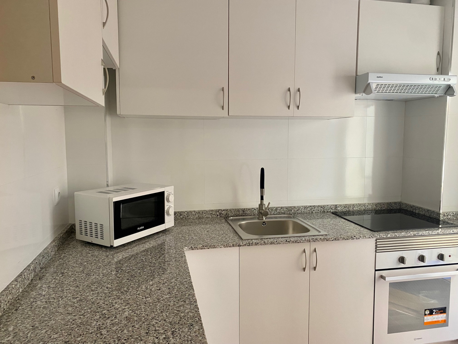 La cocina es independiente, equipada con lavadora, microondas, nevera, horno, aire acondicionado en el salón, etc. El salón comedor es muy amplio, con un sofá grande, televisión de pantalla plana y mesa de comedor para cuatro personas.